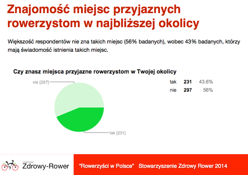 Poniższa część raportu dotyczy świadomości rowerzystów odnośnie miejsc przyjaznych rowerzystów.