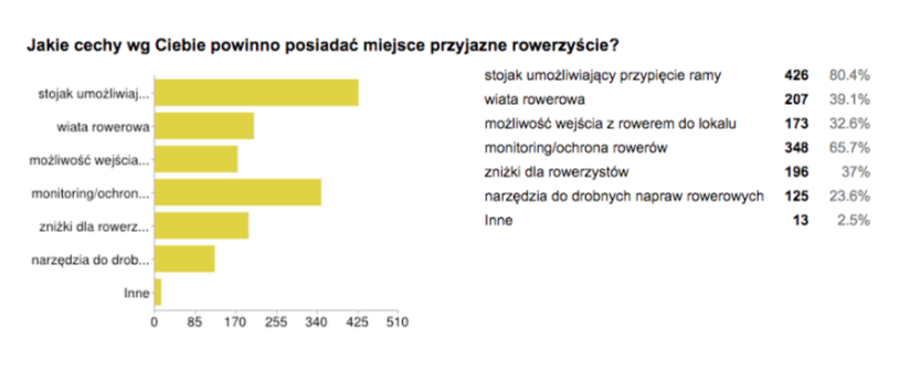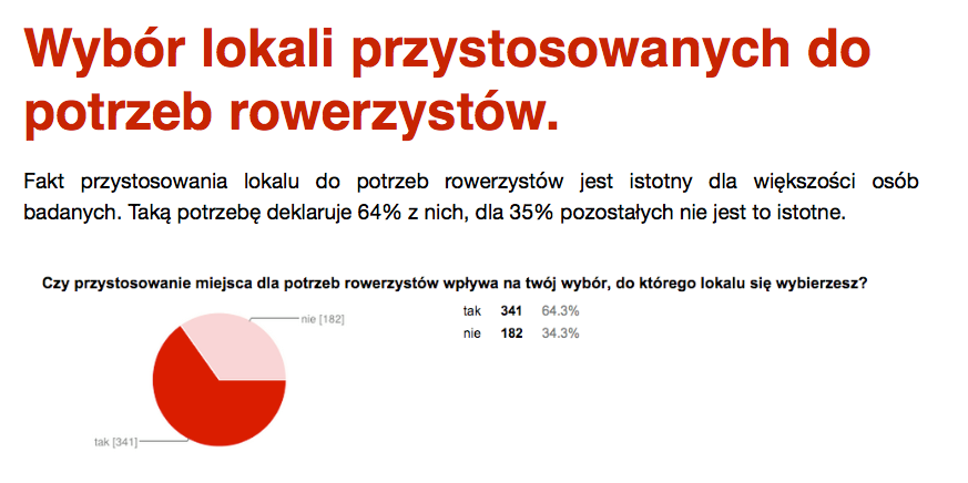 Pokazuje to potrzebę rozwoju infrastruktury rowerowej. Zarówno jeżeli chodzi o budowę dróg dla rowerów jak i tworzenie udogodnień dla rowerzystów przez przedsiębiorców – właścicieli lokali usługowych.